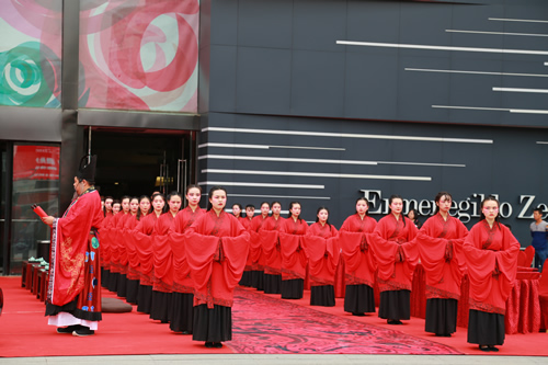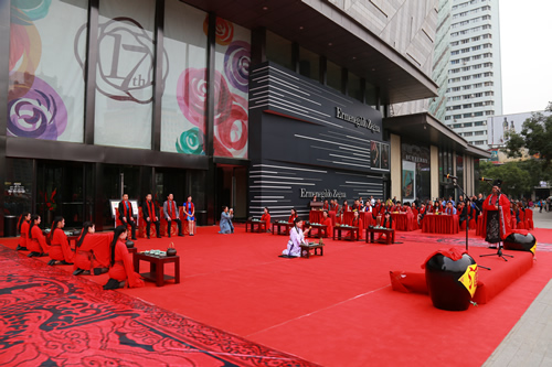 國芳集團十七周年司慶大型文化活動——漢式迎賓禮于9月3日上午8時30分,在國芳百貨正西門正式上演。除集團各分子公司管理人員外,還邀請了與國芳集團合作多年的數(shù)十名供應商代表一同出席此活動。