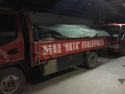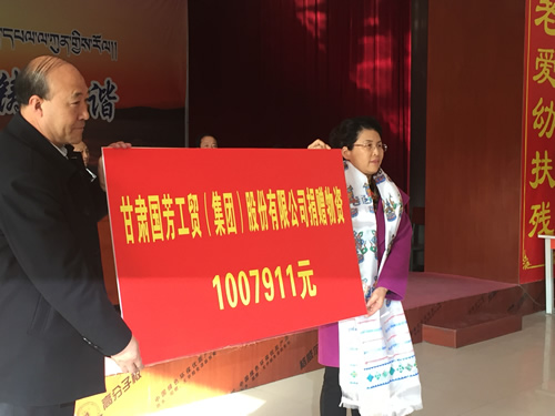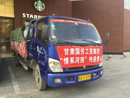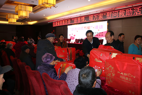 2016年12月12日,甘肅省慈善總會、武威市民政局攜甘肅國芳工貿(mào)(集團)股份有限公司共同舉行“情暖萬家”送溫暖活動,將100萬元資金以及價值100萬元的過冬棉服帶給天?h岔口驛敬老院的老人們。當(dāng)日下午,甘肅省慈善總會與甘肅國芳工貿(mào)(集團)股份有限公司的各位愛心人士又馬不停蹄的趕赴張掖為當(dāng)?shù)氐墓鹿牙先藥チ?60萬元資金以及價值250余萬元的過冬衣物及被褥。此次活動傳導(dǎo)社會幫扶、精準(zhǔn)扶貧精神的同時也默默為社會傳導(dǎo)著一份正能量。