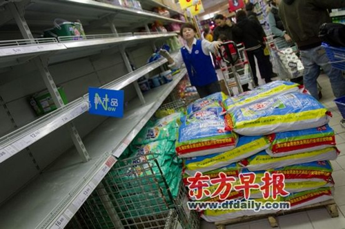 據(jù)上海市商務委有關人士透露,由于補貨及時,昨天下午1時后全市各大超市、賣場相關貨架基本已恢復正常。