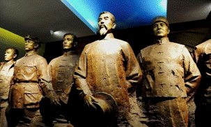 甘肅建黨的創(chuàng)始人張一悟同志與革命先烈雕像收藏于張一悟紀念館正廳